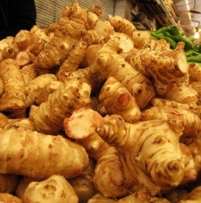 Pierwszy raz zetknęłam się z tym warzywem w zeszłym roku będąc na wyjeździe w Wielkiej Brytanii, gdzie na targach warzywnych można spotkać produkty pochodzące niemal z całego świata. Zainteresowana tą bulwą (przypominającą nieco korzeń imbiru czy chrzanu), zapytałam nieśmiało o jej nazwę, a odpowiedź „jerusalem artichokes” przyznam, że bardzo mnie zaskoczyła. Po sprawdzeniu tego tajemniczego zwrotu okazało się, że chodziło o topinambur, który nazywany jest inaczej słonecznikiem bulwiastym, ze względu na kwiaty, które wyglądem przypominają właśnie kwiaty słonecznika. Po odkryciu wszystkich drogocennych właściwości, które dostarcza nam to warzywo nie mogłam po prostu go nie kupić! Okazało się, że topinambur jest nie tylko zdrowy, ale tez bardzo oryginalny w smaku!